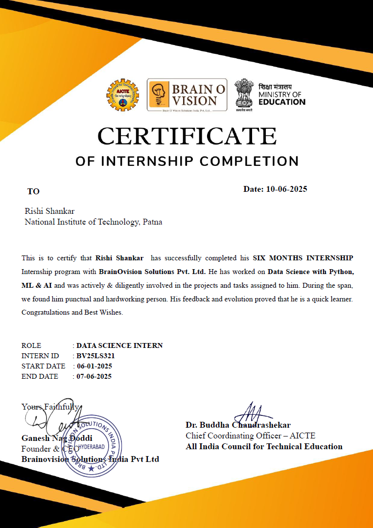 I had done my Engineering degree in Electronics and Communication Engineering from NIT Patna. Throughout my academic journey, I have developed a strong foundation in core ECE subjects such as digital electronics, analog electronics, wireless communication, microwave engineering, IoT and MATLAB. Alongside, I have cultivated a deep passion for Artificial Intelligence and have successfully completed numerous AI projects using frameworks and tools like TensorFlow, Scikit-learn, and YOLO.